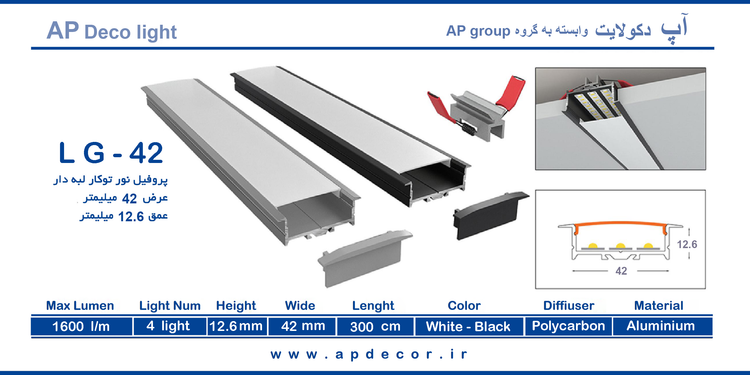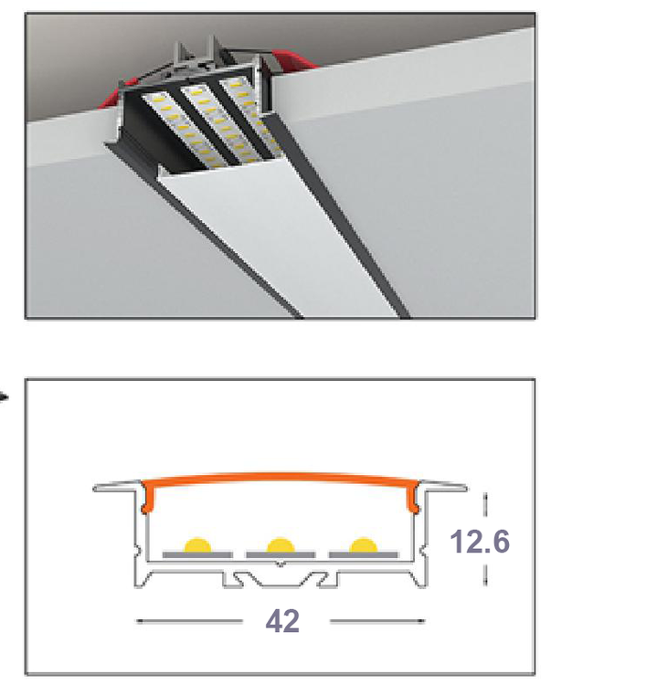 چراغ خطی توکار 42 میل گیره دار کد LT - 42