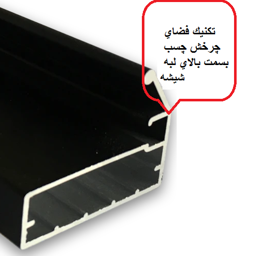 این نوع پروفیل طوری طراحی شده که شیار چسب دارای محل چرخش به سمت روی لبه شیشه بوده وکارگرانی با مهارت پایین هم میتواند با سرعت بالا این دربها را مونتاژ کنند