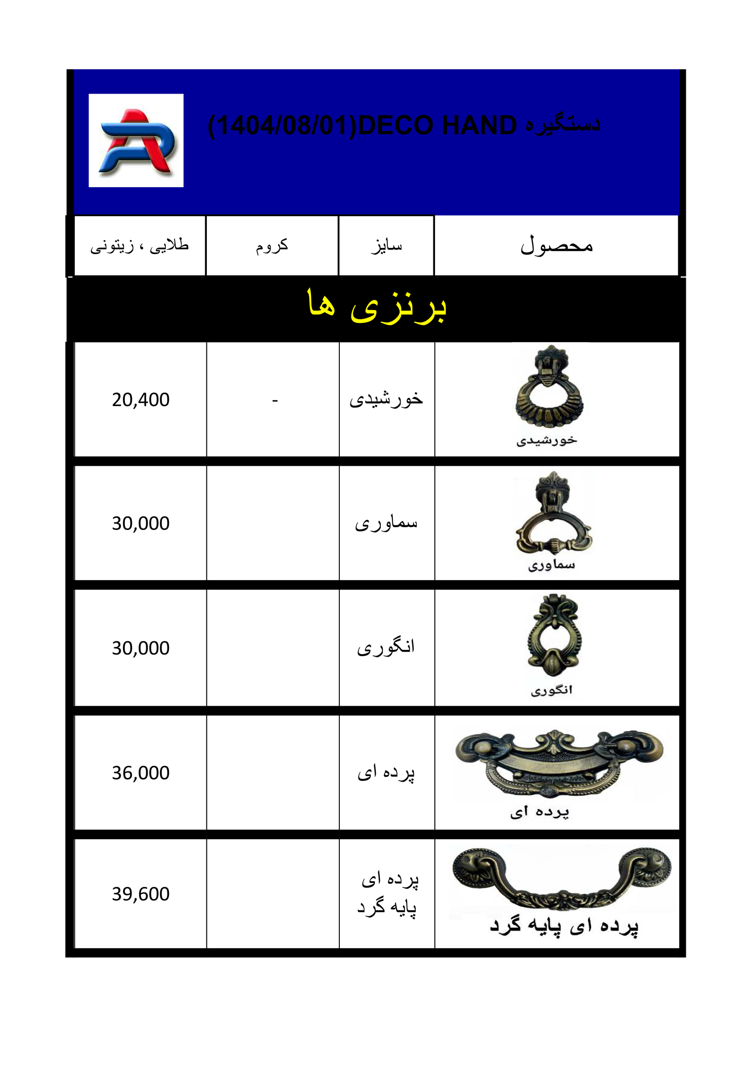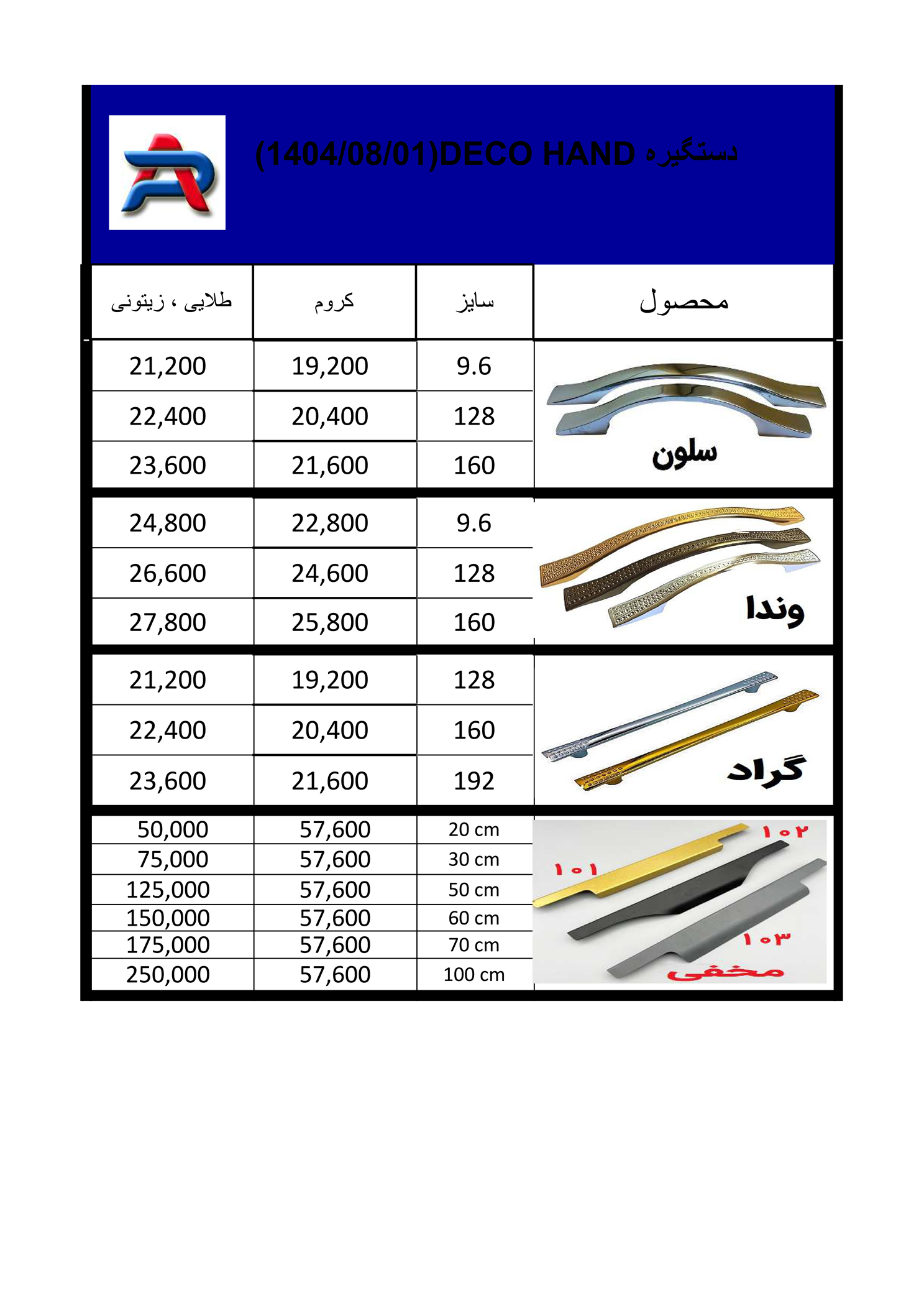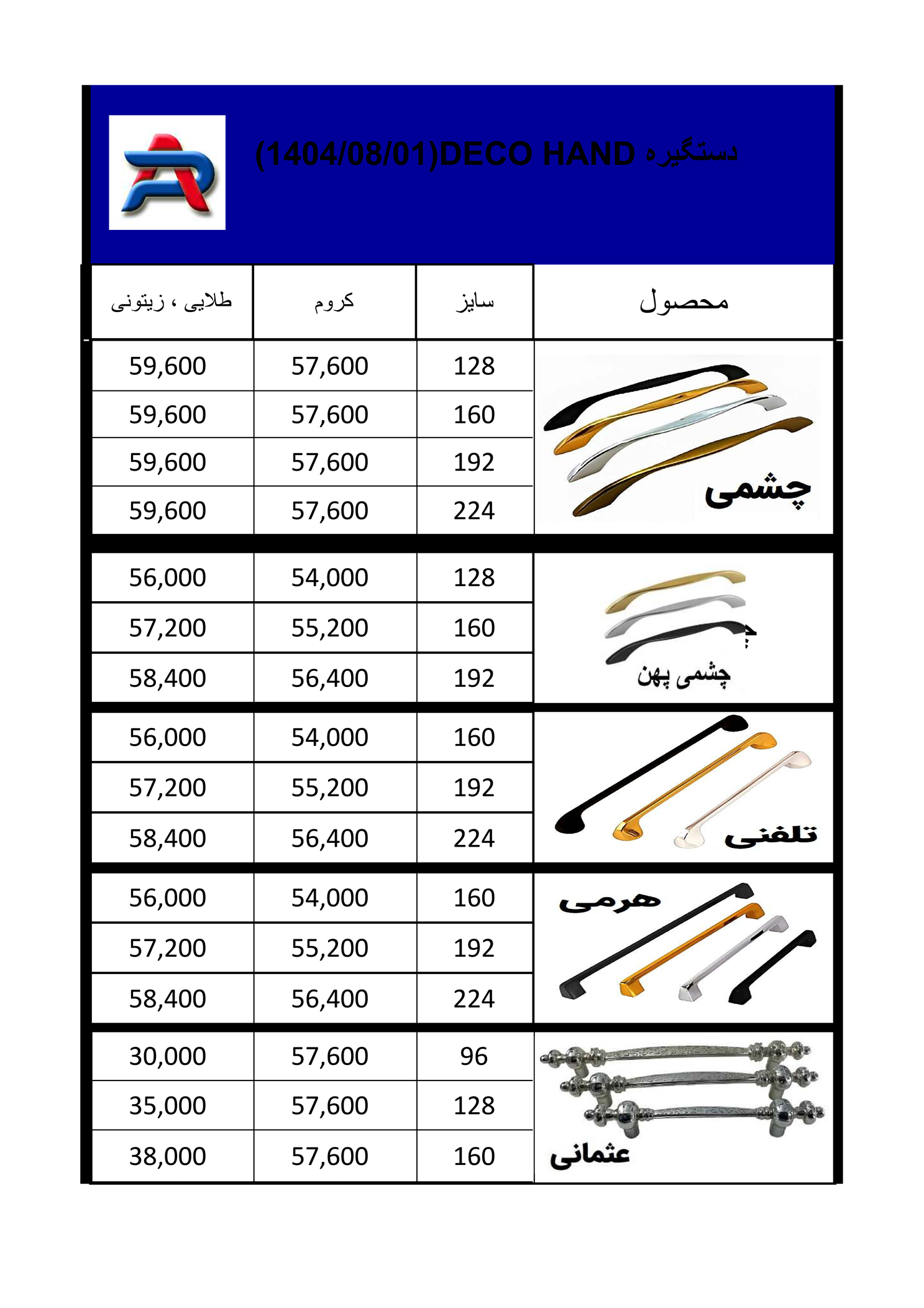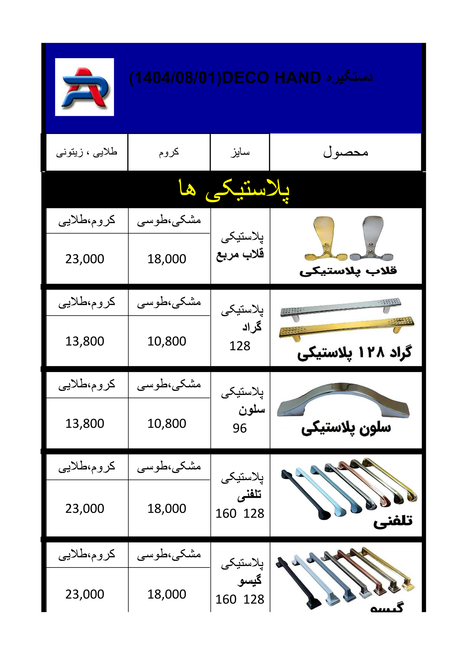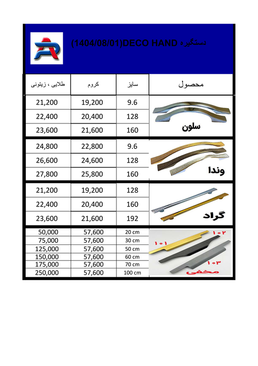 قيمت و اندازه و جنس: لطفا روي عكسها برويد و دستگيره مورد نظر را با قيمت ببينيد