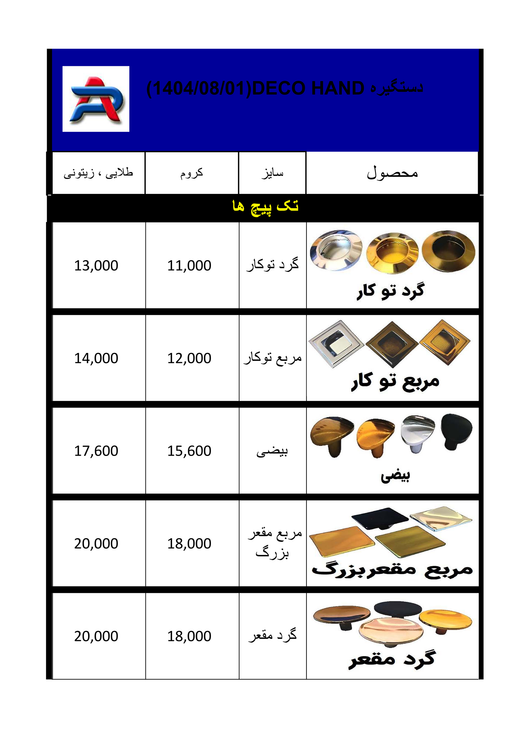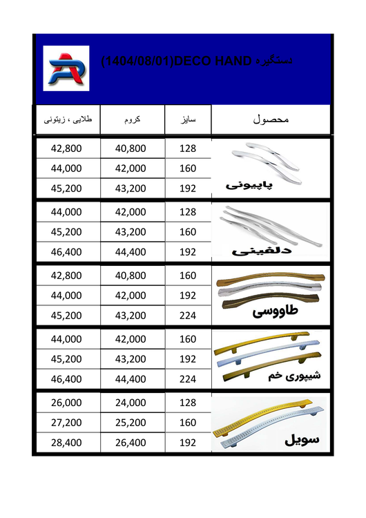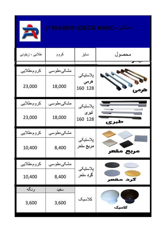 لطفا روي عكسها برويد و دستگيره مورد نظر را با قيمت ببينيد