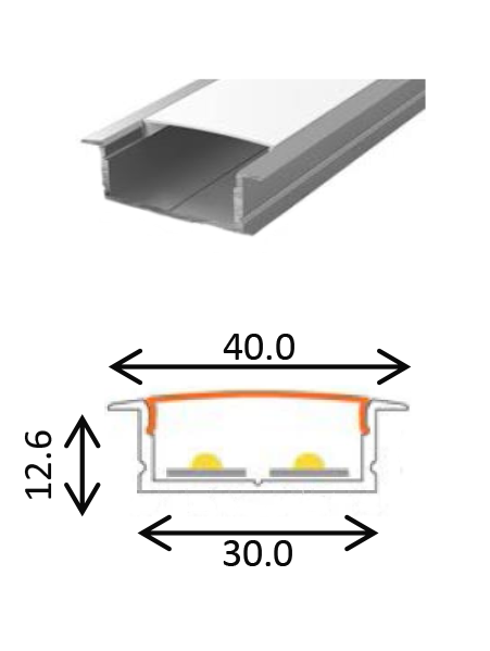 چراغ خطی توکار 30 میل کد LTM - 30 شاخه 3 متری با دیفیوزر