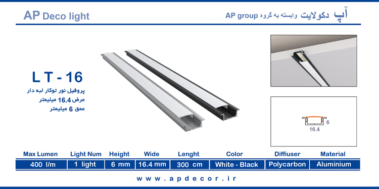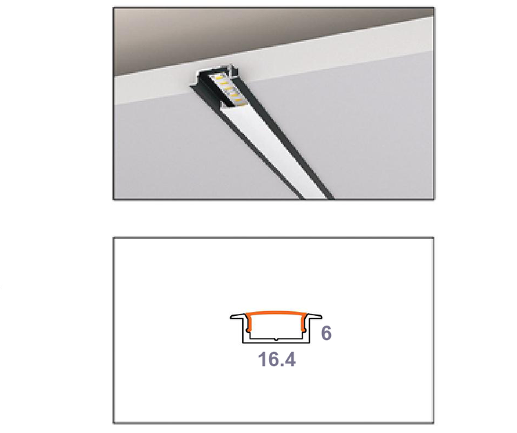 چراغ خطی توکار 16 میل کد LT - 16 شاخه 3 متری با دیفیوزر