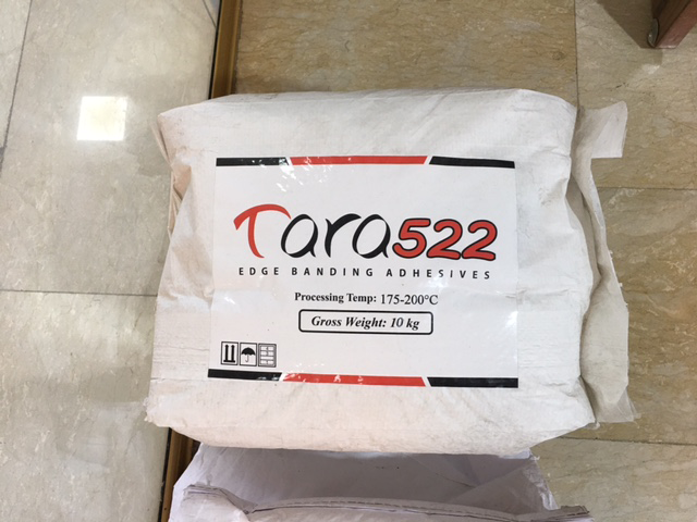 چسب دستگاه لبه چسبان مورد تاييد ما از نوع پر سرعت بوده كه از يك ماده گرانولي با خاصيت چسبندگي بالا تشكيل شده كه در حرارت 180 تا 200 درجه بسرعت ذوب و بعد از فشرده شدن بسرعت سرد شده و نوار به لبه كار ميچسبد.